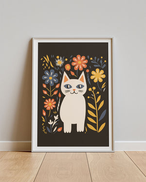 Met fijne lijnen en een tikkeltje mysterie laat Feline Garden een sierlijke kat zien, verscholen tussen bloemen. Deze zwart-witte kinderkamerposter past perfect in een botanisch of rustig interieur en is ideaal voor jonge dierenliefhebbers. Stijlvol, lief en een beetje eigenwijs.
