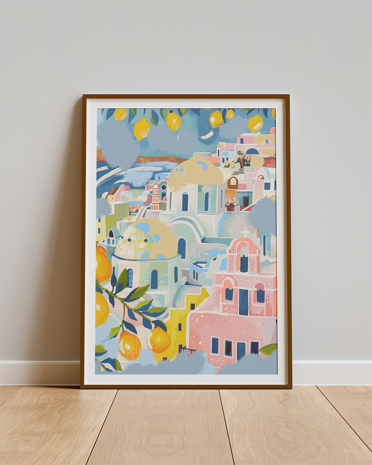 Met glooiende heuvels, zonovergoten citrusbomen en een gouden gloed straalt Limone Verde pure Italiaanse zomers uit. Deze poster brengt een rustig landschap tot leven en is perfect voor interieurs met natuurlijke materialen en zachte kleuren. Een sfeervolle ode aan het Zuiden.