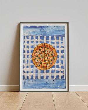 Een speelse keukenposter vol Italiaanse gezelligheid. Tavola Italiana toont een kunstzinnige pizza op een zomerse eettafel en roept het gevoel op van lange avonden tafelen in de zon. Ideaal als decoratie in de keuken, eetkamer of een warm interieur dat vraagt om een vrolijke, mediterrane touch.